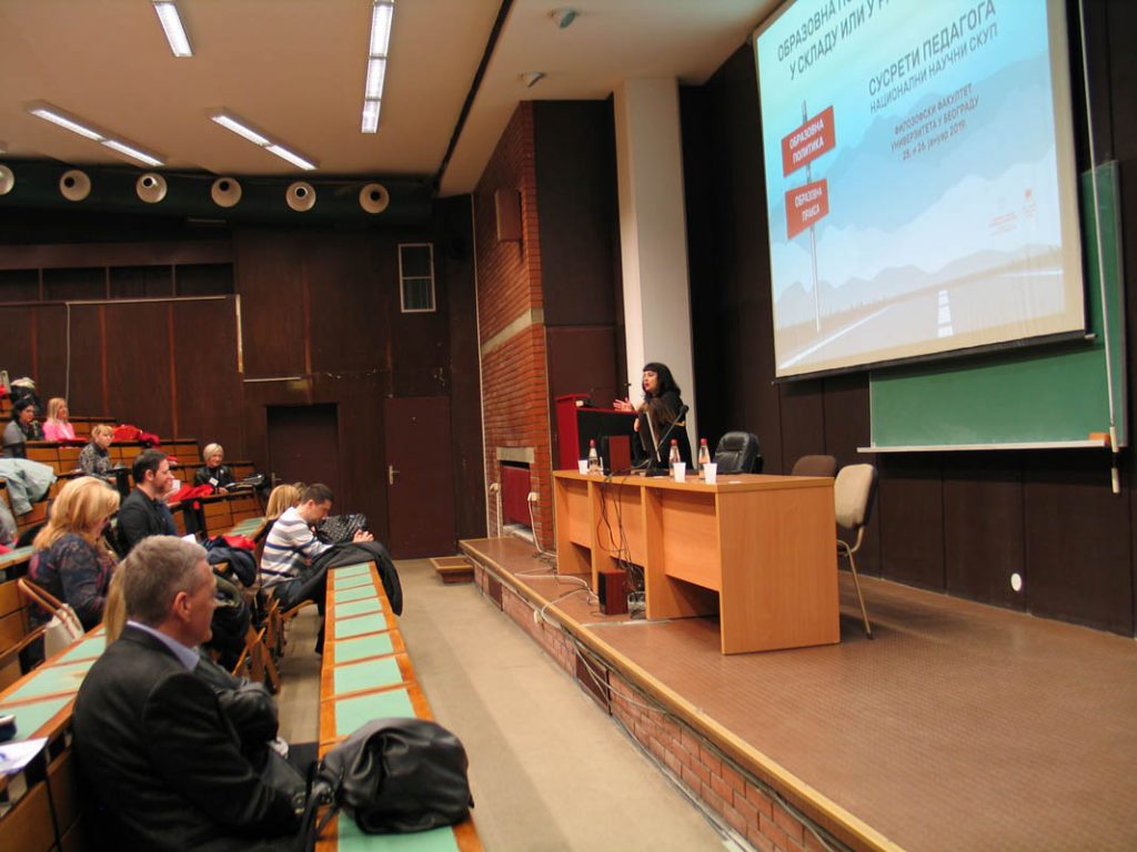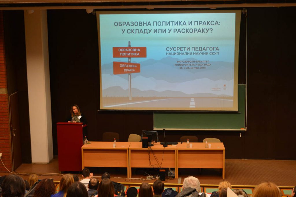 На Филозофском факултету Универзитета у Београду 25. и 26. јануара 2019. године одржан је научни скуп под називом „Образовна политика и пракса: у складу или у раскораку?”. Скуп су организовали Педагошко друштво Србије и Одељење за педагогију и андрагогију Филозофског факултета у Београду у оквиру Сусрета педагога.