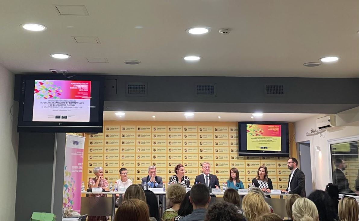 Презентација публикације Смернице за интеграцију Референтног оквира компетенција за демократску културу у одабраним плановима наставе и учења развијене у оквиру заједничког пројекта Европске уније и Савета Европе „Квалитетно образовање за све” одржана је у четвртак 8.9. у Београду (Медија Центар, Теразије 3).