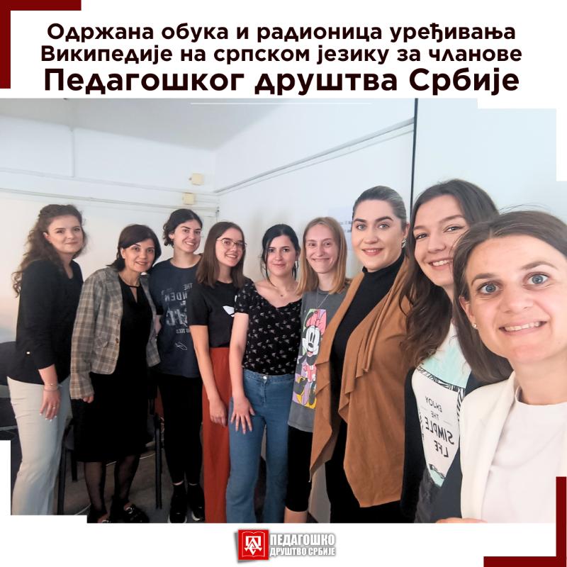 U utorak, 21. maja, u računarskom centru Univerzitetske biblioteke „Svetozar Marković” članovima Pedagoškog društva Srbije je održana obuka uređivanja Vikipedije i radionica pisanja biografija znamenitih pedagoga na ovoj internet enciklopediji.